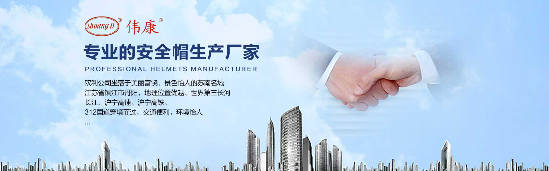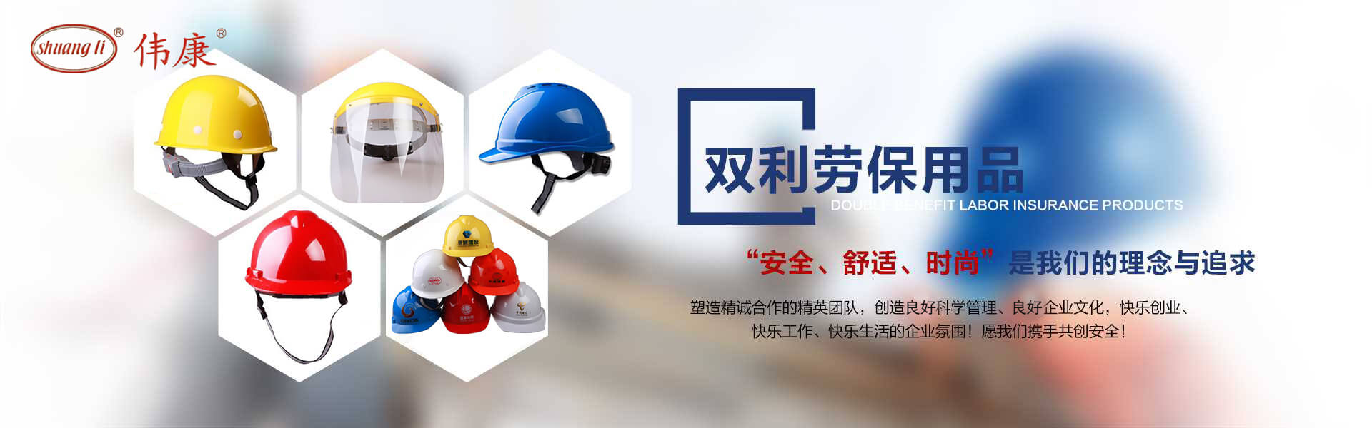 專業(yè)的安全帽生產(chǎn)廠家-鎮(zhèn)江市雙利勞保用品有限公司。雙利公司坐落于美麗富饒、景色怡人的蘇南名城——江蘇省鎮(zhèn)江市丹陽,地理位置優(yōu)越、世界第三長(zhǎng)河——長(zhǎng)江、滬寧高速、滬寧高鐵、312國(guó)道穿境而過,交通便利,環(huán)境怡人。鎮(zhèn)江市雙利勞保用品有限公司是鎮(zhèn)江市第一家創(chuàng)辦的專業(yè)生產(chǎn)安全帽的生產(chǎn)商,并申請(qǐng)擁有自己的品牌:shuangli牌和偉康牌,立足致力于安全帽研究,從原料入手研發(fā)出韌性更強(qiáng)、抗沖力更高的特點(diǎn)。公司根據(jù)實(shí)際運(yùn)行需要建立高效、務(wù)實(shí)、有序的組織機(jī)構(gòu),實(shí)現(xiàn)現(xiàn)代化公司管理。同時(shí)公司具備專業(yè)完善的生產(chǎn)設(shè)備和成熟的安全帽生產(chǎn)工藝及先進(jìn)的檢測(cè)儀器,為產(chǎn)品的質(zhì)量奠定了堅(jiān)實(shí)的基礎(chǔ),各項(xiàng)技術(shù)指標(biāo)均達(dá)到國(guó)家《GB2811-2019》《安全帽》標(biāo)準(zhǔn)。產(chǎn)品廣泛適用于建筑、林業(yè)、石油、石化、造船、港口、冶金等行業(yè)。 “安全、舒適、時(shí)尚”是我們的理念與追求,塑造精誠(chéng)合作的精英團(tuán)隊(duì),創(chuàng)造科學(xué)管理、良好的企業(yè)文化,快樂創(chuàng)業(yè)、快樂工作、快樂生活的企業(yè)氛圍!愿我們攜手共創(chuàng)安全!